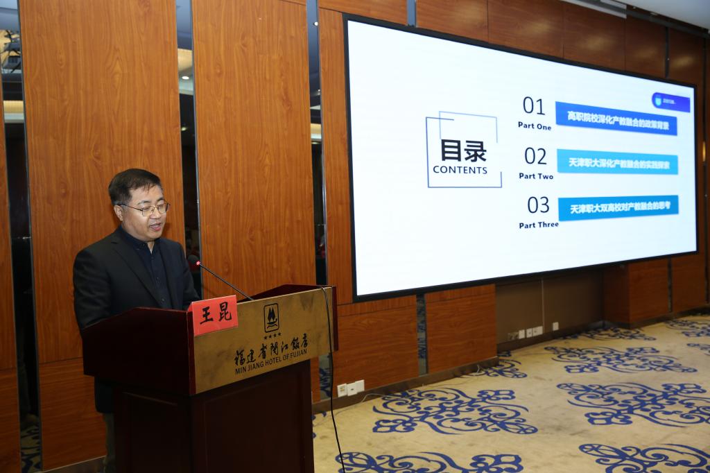 隨后,省衛(wèi)健委規(guī)劃信息處林再得主任、天津職業(yè)大學(xué)合作教育辦公室主任王昆教授分別作了題為《福建省衛(wèi)生健康發(fā)展現(xiàn)狀與思考》和《深化產(chǎn)教融合,構(gòu)建校企命運共同體》 的精彩報告。