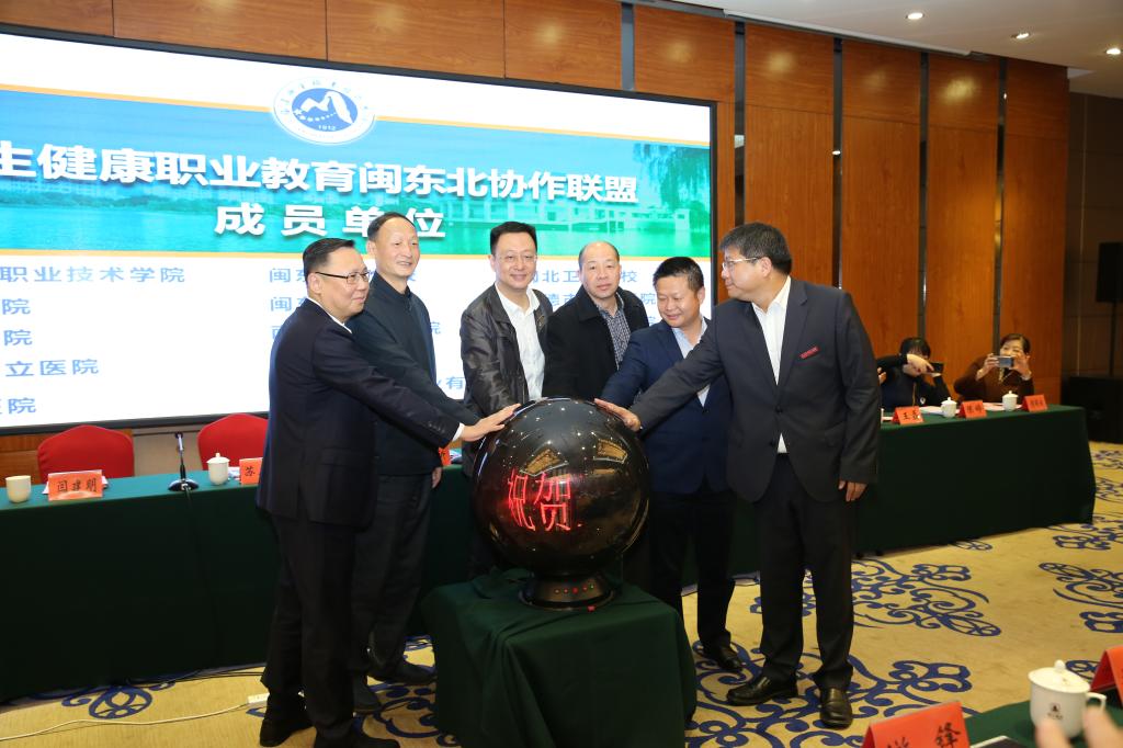 會上舉行了衛(wèi)生健康職業(yè)教育閩東北協(xié)作聯(lián)盟成立儀式。洪濤處長、柳貴清會長、曾武祈書記、蘇友新校長以及寧德市人民醫(yī)院顏銀斌副院長、邵武市立醫(yī)院甘芝榮副院長共同按下聯(lián)盟啟動按鈕,曾武祈書記為聯(lián)盟理事單位代表頒發(fā)聘書。