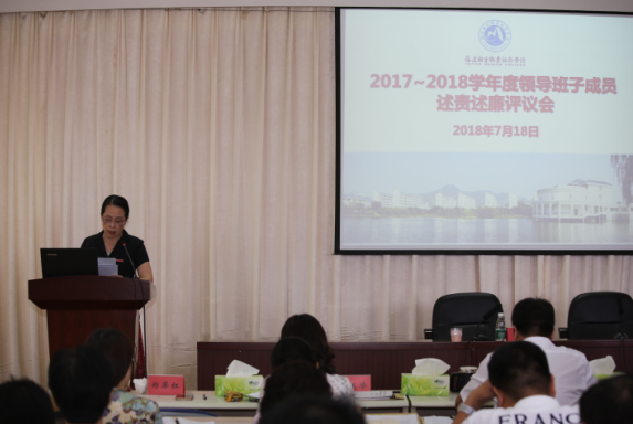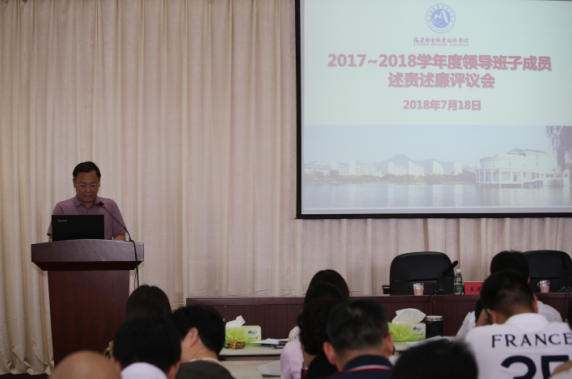 考核工作結(jié)束后,我院在六樓會議室召開領(lǐng)導(dǎo)班子成員述責(zé)述廉會議。領(lǐng)導(dǎo)班子成員逐個對一學(xué)年來履行工作職責(zé)和遵守紀(jì)律的情況做了簡要匯報,與會人員對學(xué)院黨委領(lǐng)導(dǎo)班子成員述責(zé)述廉進行了民主評議。