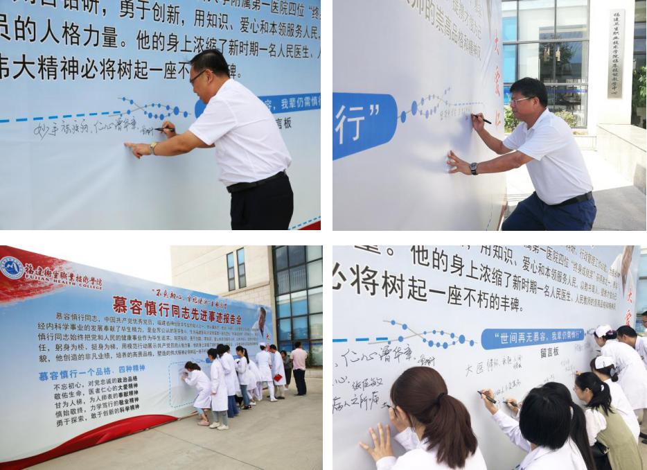 黨委書記曾武祈倡導廣大師生要大力弘揚學習慕容慎行同志“一個品格、四種精神”,廣大黨員干部要像慕容慎行同志那樣堅定共產(chǎn)黨人的理想信念,牢記為人民服務(wù)的宗旨義務(wù),在“不忘初心、牢記使命”主題教育中,結(jié)合黨日活動、“三會一課”做好慕容慎行先進事跡學習,在各自的崗位上,對標慕容慎行同志的先進事跡,按照“守初心、擔使命、找差距、抓落實”的總要求,在真抓實干中踐行初心使命,為培養(yǎng)高素質(zhì)技能型衛(wèi)生健康人才作出新的貢獻,為學院建設(shè)譜寫新的篇章。