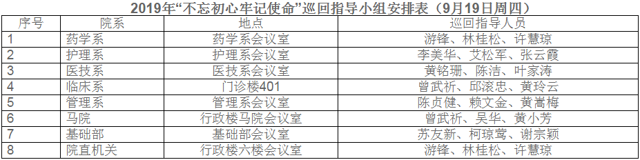 9月19日下午,福建衛(wèi)生職業(yè)技術(shù)學(xué)院黨委派出7個巡回指導(dǎo)小組,分別參加各黨總支(直屬黨支部)組織召開的“不忘初心、牢記使命”主題教育動員部署會。