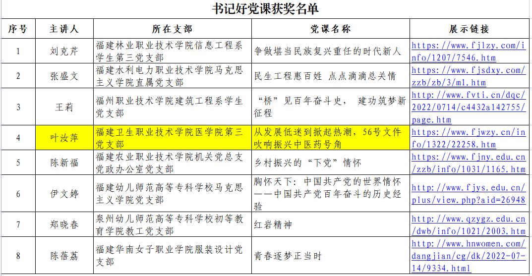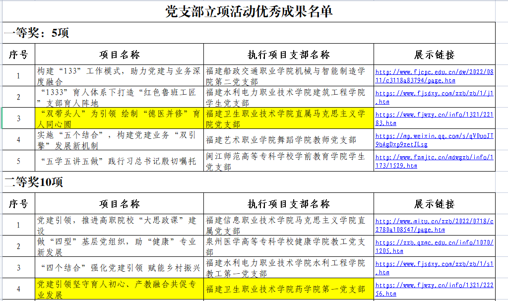 近日,中共福建省委教育工委公布高校黨支部工作“立項(xiàng)活動(dòng)”優(yōu)秀成果和“黨員好故事、書記好黨課、支部好案例”獲獎(jiǎng)名單。我校共有3個(gè)項(xiàng)目入選,其中,黨支部工作“立項(xiàng)活動(dòng)”一、二等獎(jiǎng)各1項(xiàng),“書記好黨課”1項(xiàng)。