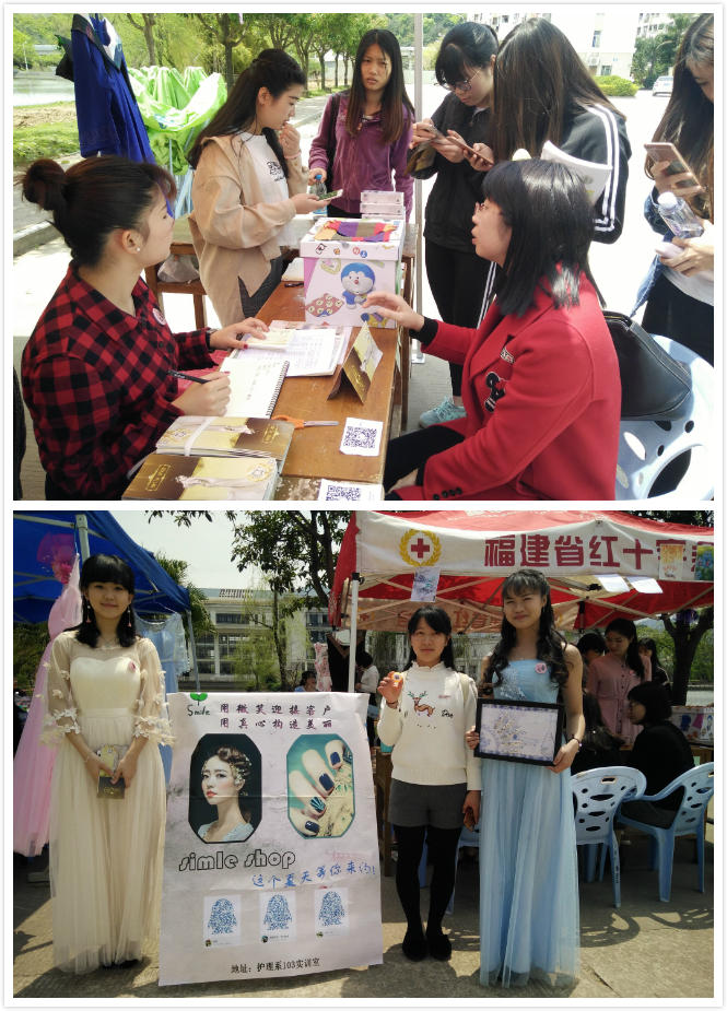 Smile shop是由醫(yī)學美容專業(yè)學生自主創(chuàng)辦的創(chuàng)業(yè)項目。在創(chuàng)辦初期得到學校領(lǐng)導的大力支持,現(xiàn)今已創(chuàng)辦2年之久。項目以生活美容為主,如護膚(臉部按摩護理,)美體(腎部保養(yǎng),腹部減肥)美甲(光療甲)美妝(舞臺妝,生活妝,攝影妝等),還有醫(yī)美項目,冰點脫毛,激光點痣,紅藍光治療儀等。創(chuàng)辦此項目的目的是為了體現(xiàn)醫(yī)美專業(yè)學生的價值,將課堂學到的美容手法與技能,應(yīng)用到實際生活中。使大家更多的了解美容這個行業(yè),也讓我們的生活變得更加的豐富。