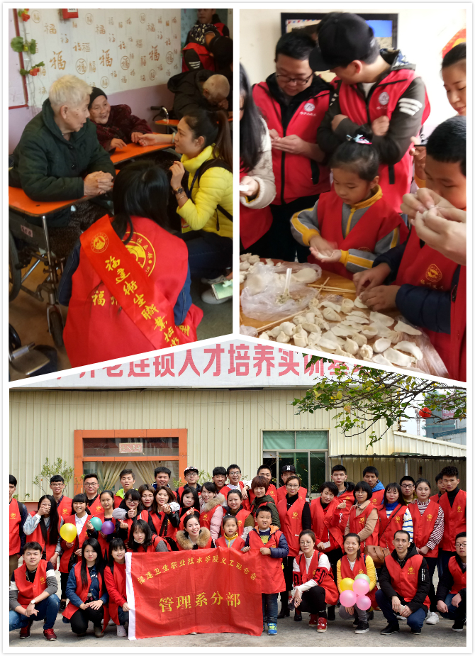 3月18日,16衛(wèi)管301班團(tuán)支部圍繞“愛,就在你我之間”這一主題,聯(lián)合福建信息職業(yè)技術(shù)學(xué)院,在福州義工俱樂部的帶領(lǐng)下來到福州市倉山安心護(hù)理院進(jìn)行志愿者服務(wù),隨行的有兒童義工團(tuán)的小朋友及家長。志愿者們給老人表演節(jié)目、陪老人聊天、幫老人包餃子。小小年紀(jì)兒童義工團(tuán)的孩子們也不服輸,他們懂得快樂需要分享才能加倍的快樂。