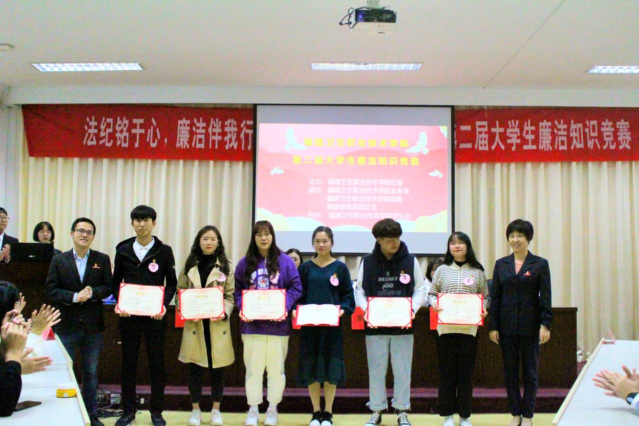 為深入弘揚廉潔文化,普及廉潔知識,永葆廉潔自律之心,揚青年正氣,樹廉潔新風(fēng)。在12月9日“國際反腐敗日”來臨之際,由學(xué)院紀(jì)委、團委主辦、健康管理系團總支承辦的第二屆大學(xué)生廉潔知識競賽于11月28日下午6:30在行政樓六樓會議室舉行。比賽特邀學(xué)院紀(jì)委副書記、紀(jì)檢監(jiān)察室主任程劍芬老師、院團委書記黃曦老師、紀(jì)檢監(jiān)察室楊金城老師擔(dān)任評委及指導(dǎo)。蒞臨活動現(xiàn)場的還有:護理系團總支書記李寶珠老師、團總支副書記林飛準(zhǔn)老師、團總支副書記張龍老師、藥學(xué)系團總支副書記胡丹老師、醫(yī)學(xué)技術(shù)系團總支書記曾慶才老師、臨床醫(yī)學(xué)系團總支書記陳清清老師、健康管理系團總支書記馮瑞華老師、健康管理系團總支副書記趙茜老師。