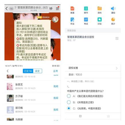 參加本次團校學習175名學員參加了考試。此次考試主要圍繞習近平新時代中國特色社會主義思想和新時期共青團所肩負的歷史使命以及團的組織建設、團員的權利與義務、共青團性質、入團誓詞、共青團的奮斗目標、團徽構成以及象征、團史團章等諸多方面進行考察。所考知識點全面,將大家平時培訓所學的大體理論體系都舉列于卷面,基本能檢測出學員平時掌握知識的情況。雖然是線上考試,但是在考試過程中,每位學員們都自覺遵守考場紀律、誠信應考,認真答題。此次業(yè)余分團校培訓班結業(yè)考試本著公平、公正、公開的原則,為廣大學員營造一個良好的學習氛圍。