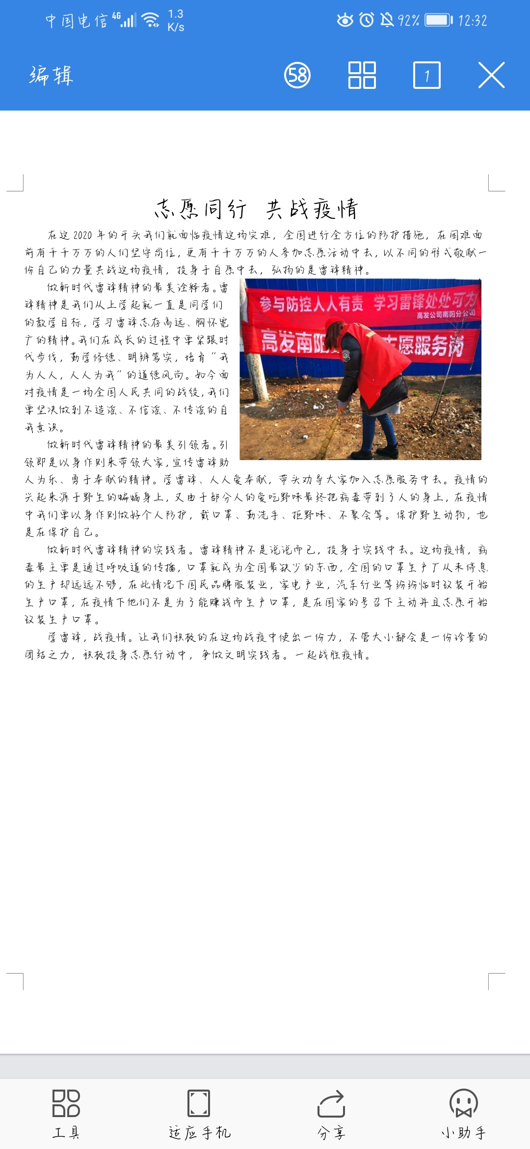 通過(guò)此次線上征文比賽使同學(xué)們認(rèn)識(shí)到抗擊疫情需要全社會(huì)的共同參與,雷鋒精神是中國(guó)精神的突出代表,面對(duì)突然而來(lái)的疫情,作為一名大學(xué)生,我們將傳承雷鋒精神,凝聚起全面抗擊疫情的重要力量,奏響抗疫最強(qiáng)音!