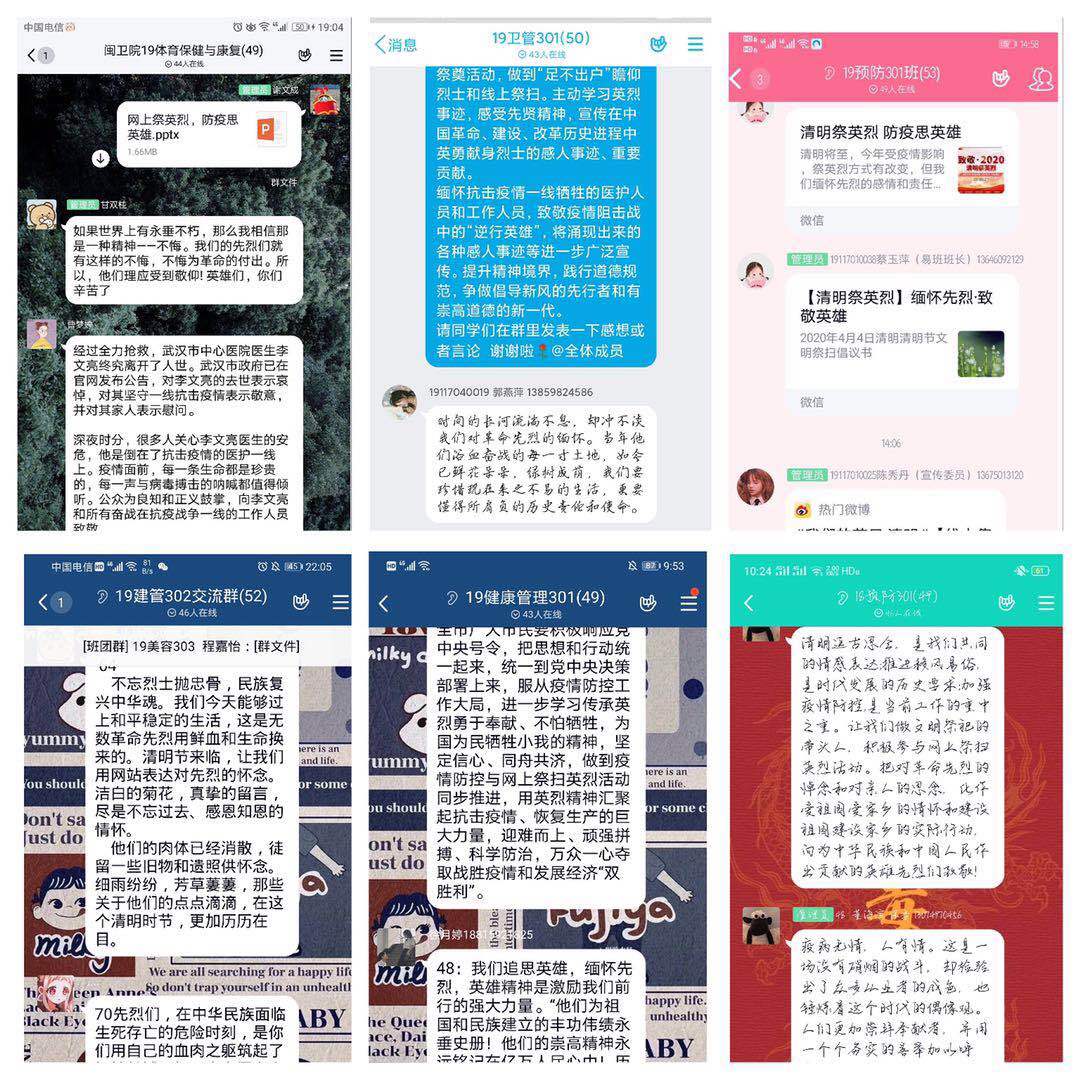 本次線上特別主題團課活動以“網(wǎng)上祭英烈,防疫思英雄”為主題,于4月4日組織各班團支部開展,各團支部書記制作主題團課課件,通過QQ 群,微信群集中時間進行宣講,并組織團支部團員學習英烈事跡,感受先賢精神,緬懷抗擊一線犧牲的醫(yī)護人員和工作人員,并且向疫情阻擊戰(zhàn)中的“逆行英雄”致敬。團員們積極踐行綠色、環(huán)保、文明的祭掃方式,同時登錄清明祭掃專題網(wǎng)頁學習先烈英雄事跡,在神圣的“人民英雄永垂不朽”紀念碑前,通過獻花、默哀、留言等方式,向英烈們致敬,寄托哀思。在團課聽講中,團員們被英雄們的事例感動,紛紛表示要銘記歷史,弘揚民族精神繼承革命優(yōu)良傳統(tǒng),將革命事業(yè)代代傳承;珍惜現(xiàn)在的幸福生活,努力學習,勤奮進取,做一個積極向上、身體健康、熱愛生活、熱愛祖國的好青年,為實現(xiàn)祖國偉大復興貢獻力量。