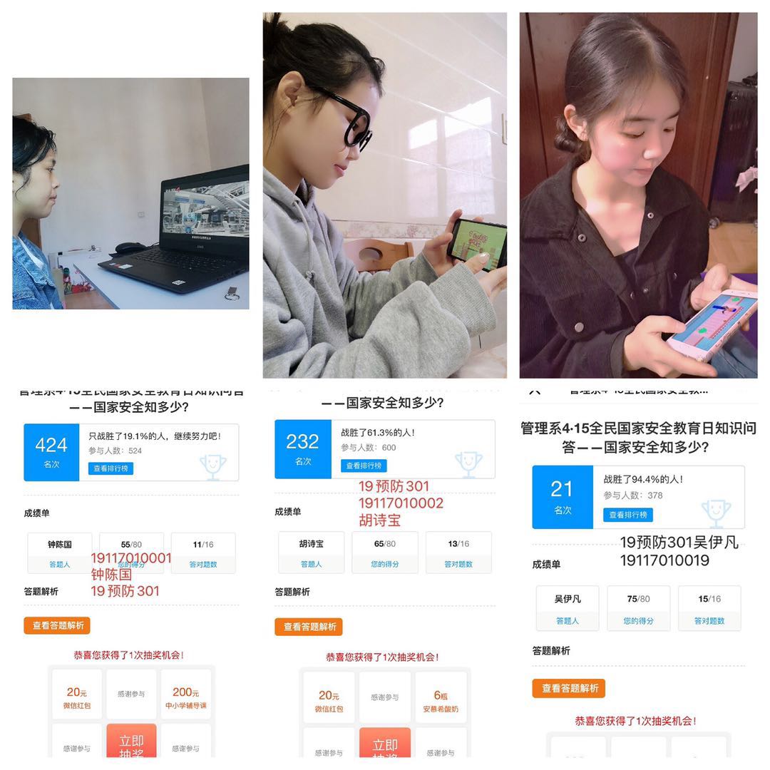 同時,為了營造“停課不停學(xué)”的學(xué)習(xí)氛圍,我系各團支部與班級保衛(wèi)委員以QQ、微信等為載體,通過觀看相關(guān)視頻和“全民國家安全教育”知識問卷形式更全面的引領(lǐng)同學(xué)們了解國家安全,為師生提前打下國家安全“預(yù)防針”。通過視頻和問卷調(diào)查,同學(xué)們也認識到隨著經(jīng)濟全球化和信息網(wǎng)絡(luò)化進程的不斷推進,我們要注重國家安全意識的培養(yǎng),增強國家安全觀念已經(jīng)日益成為學(xué)生素質(zhì)教育中的一個重要方面。