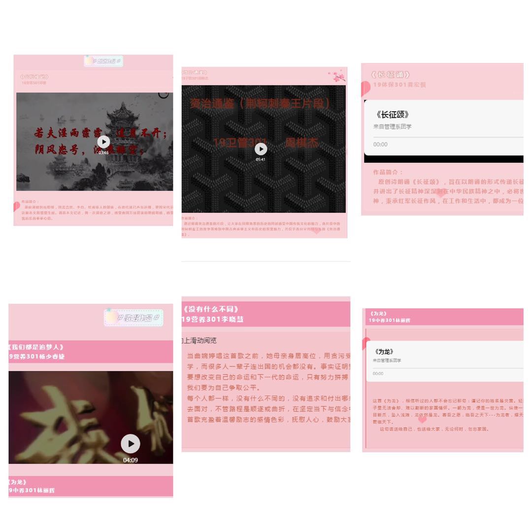 本次線上活動(dòng)主要分為朗誦和歌唱兩種形式,活動(dòng)受到了同學(xué)們的廣泛關(guān)注。在活動(dòng)過程中,一句句慷慨激昂,氣勢(shì)恢宏的朗誦充分體現(xiàn)了當(dāng)代大學(xué)生的青春與活力;一首首耳熟能詳、熱血澎湃的歌唱充分展示了我系學(xué)子樂觀向上、積極奮進(jìn)的昂揚(yáng)斗志。在這個(gè)五四青年節(jié)的來臨之際,一群意氣風(fēng)發(fā)的青年者用青春描繪時(shí)代的畫卷,唱響時(shí)代的凱歌,揚(yáng)起時(shí)代的風(fēng)帆,更是營(yíng)造了一種樸實(shí)深情、唱響新時(shí)代的主旋律的良好氛圍,謳歌了青年學(xué)子們對(duì)中華千古風(fēng)韻與歷史遺產(chǎn)的精神面貌。以歌聲傳遞信仰、用朗誦傳承經(jīng)典,每一句詩韻和歌唱都深深表現(xiàn)出我系學(xué)子們對(duì)中華經(jīng)典的熾熱追求與敬佩。最終,(1)朗誦榜:16美容501鄭霏《岳陽樓記》,19衛(wèi)管301周棋杰《資治通鑒》,19體保301龔宏祺《長(zhǎng)征頌》,19預(yù)防302張小龍《日出東方》,19中醫(yī)養(yǎng)生保健301曾余熙《大醫(yī)精誠》;(2)歌唱榜:19中養(yǎng)301林麗輝《為龍》,19營(yíng)養(yǎng)301李婷婷《仰望星空》,19營(yíng)養(yǎng)301李曉慧《沒有什么不同》,19營(yíng)養(yǎng)301李夢(mèng)婷《陽光總在風(fēng)雨后》,19營(yíng)養(yǎng)301楊少睿捷《我們都是追夢(mèng)人》作品脫穎而出。