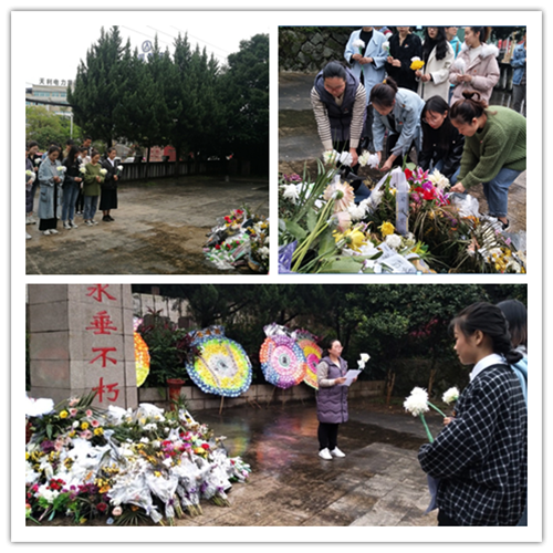 祭掃活動(dòng)伊始,全體參與人員整齊列隊(duì)在革命烈士紀(jì)念碑前齊唱國歌后,大家在革命烈士紀(jì)念碑前默哀三分鐘,懷著崇高的敬意向革命烈士紀(jì)念碑深深地三鞠躬并獻(xiàn)上自制的紙花,隨后,管理系學(xué)生黨支部書記揭金花同志代表支部發(fā)言,表達(dá)了對革命烈士的追念和敬仰,并呼吁我們永遠(yuǎn)不能忘記英烈們的付出,更不能忘記我們肩負(fù)著實(shí)現(xiàn)中華民族偉大復(fù)興的歷史重任。希望所有的教師黨員在教育崗位上守土有責(zé)、守土負(fù)責(zé)、守土盡責(zé),教書育人,培養(yǎng)出優(yōu)秀的大學(xué)生。希望所有學(xué)生入黨積極分子,努力學(xué)習(xí),掌握就業(yè)本領(lǐng),在將來的工作崗位上,為祖國衛(wèi)生事業(yè)發(fā)展貢獻(xiàn)力量。