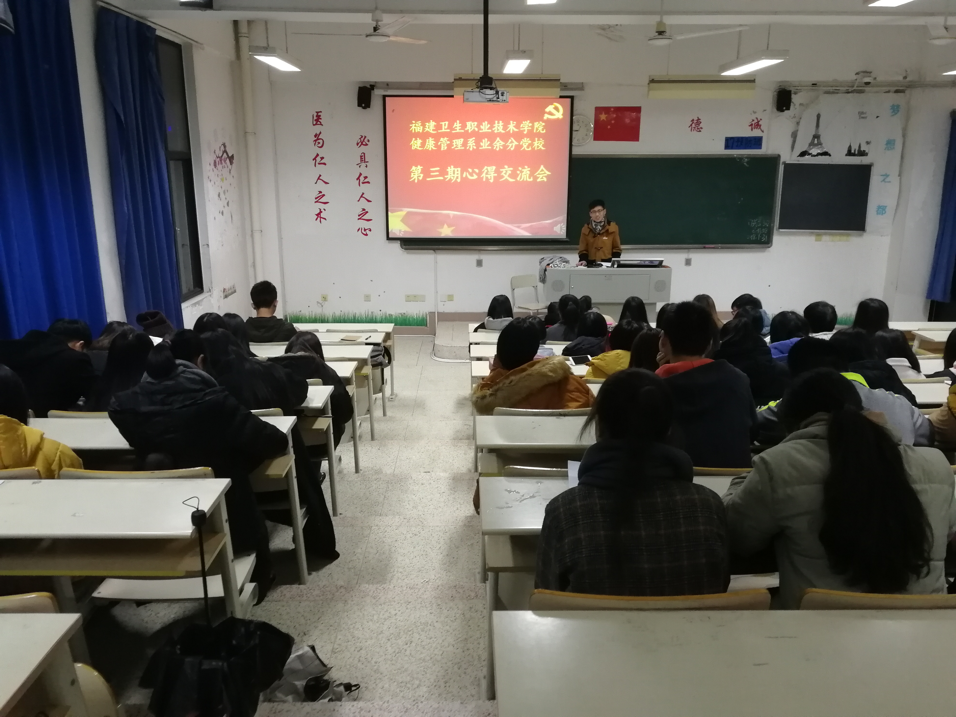 為了加強(qiáng)健康管理系第三期業(yè)余分黨校黨課培訓(xùn)班學(xué)員對(duì)黨性的認(rèn)識(shí),促進(jìn)培訓(xùn)班同學(xué)間的思想交流,我系第三期業(yè)余分黨校1月31日在教學(xué)樓314舉辦心得分享交流會(huì),管理系團(tuán)總支宣傳委員趙雨梅主持。