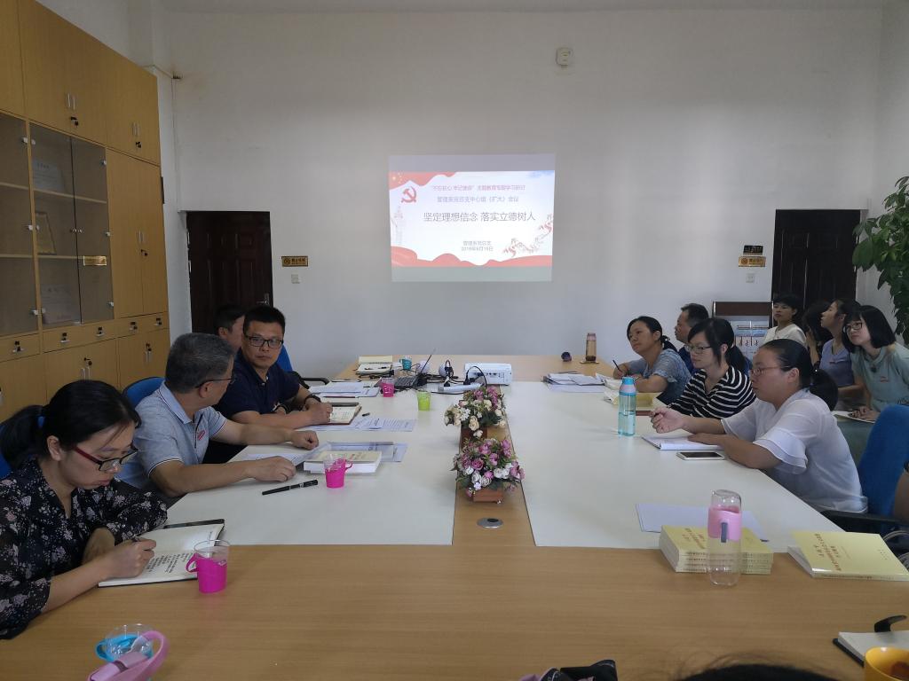 9月19日下午,管理系黨總支在系會議室召開管理系黨總支中心組(擴大)會議,開展題為“堅定理想信念,落實立德樹人”的第一專題第一場研討學習。學院黨委委員、副院長、第五巡回指導小組組長陳貞健同志、藥學系黨總支副書記賴文金同志、專職組織員黃嵩梅同志及管理系黨總支全體黨員參會。會議由管理系黨總支書記艾松軍主持。