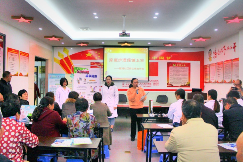 為貫徹落實“不忘初心、牢記使命”主題教育工作的部署要求,響應2019年全民終身學習活動周的精神,引導師生黨員將理論學習和社會服務緊密結合,增強使命意識和責任擔當,推動全民終身學習,助力基層社區(qū)“健康中國”建設,2019年11月28日下午,管理系第一黨支部副書記、預防醫(yī)學教研室主任揭金花帶領支部教師黨員及部分學生黨員、入黨積極分子赴馬尾區(qū)羅星街道新港社區(qū)開展“志愿服務社區(qū)行”主題黨日活動。