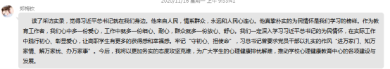 教師黨員鄭梅欽表示,讀了采訪實(shí)錄,習(xí)近平總書記真摯樸實(shí)的為民情懷是我們學(xué)習(xí)的榜樣。作為教育工作者,我們心中多一份愛心,工作中就多一份細(xì)心、耐心,群眾就多一份放心、舒心。深入學(xué)習(xí)習(xí)近平總書記的為民情懷,在實(shí)際工作中踐行初心、彰顯愛心,讓高職學(xué)生有更多的獲得感和幸福感。