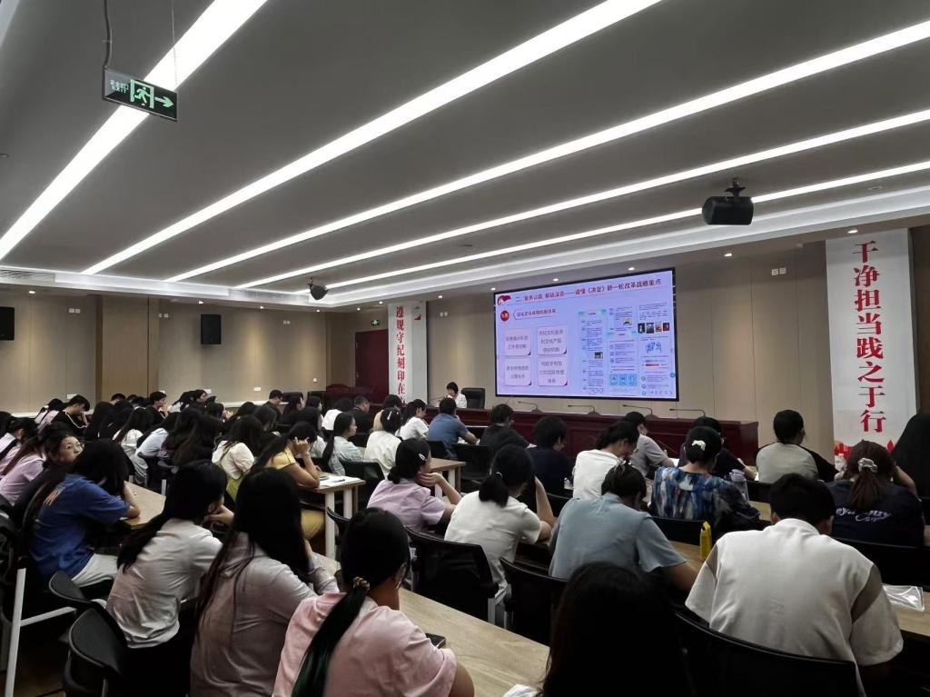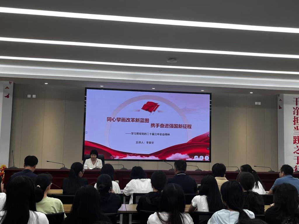 9月12日,校黨委副書記李美華在行政樓6樓會(huì)議室為健康學(xué)院師生宣講黨的二十屆三中全會(huì)精神,學(xué)院黨政班子成員、師生黨員、學(xué)生代表等共100余人現(xiàn)場聆聽。