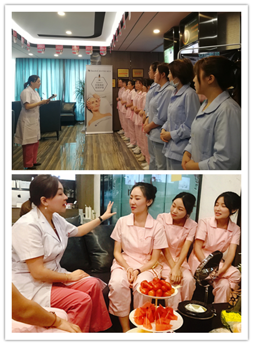 在知識(shí)分享開(kāi)始前,運(yùn)營(yíng)部的季總為同學(xué)們闡述了美容皮膚的行業(yè)發(fā)展以及安心新顏企業(yè)的品牌發(fā)展之路,并且與同學(xué)們分享了他們未來(lái)的實(shí)習(xí)、就業(yè)以及職業(yè)發(fā)展歷程之路。