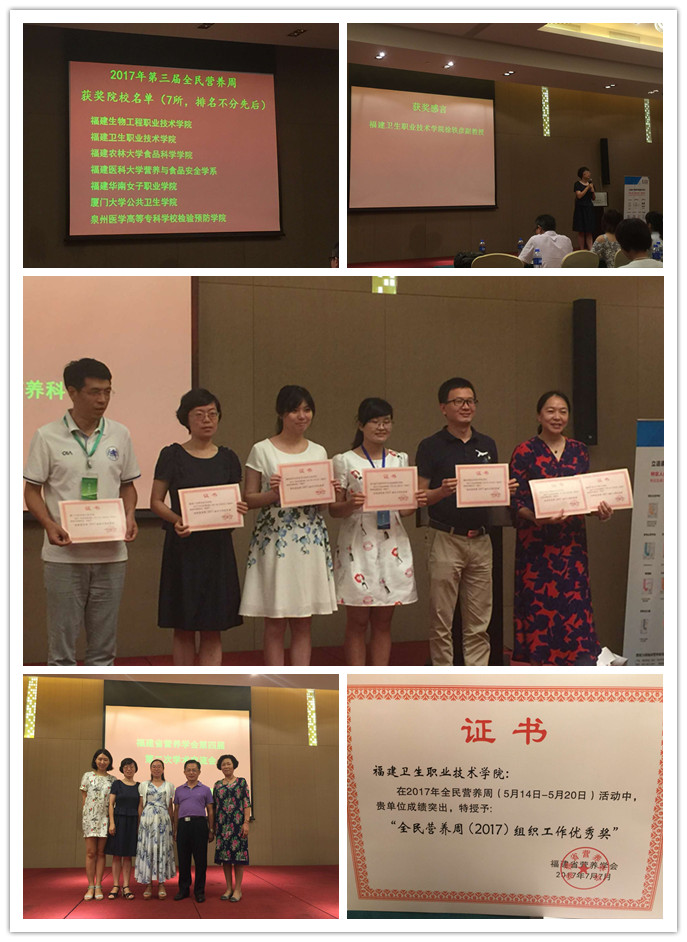 學(xué)院醫(yī)學(xué)營養(yǎng)專業(yè)在基層營養(yǎng)宣教方面的努力受到了大會的肯定并榮獲"全民營養(yǎng)周(2017)組織工作優(yōu)秀獎",管理系徐軼彥老師作為院校代表發(fā)表了感言。