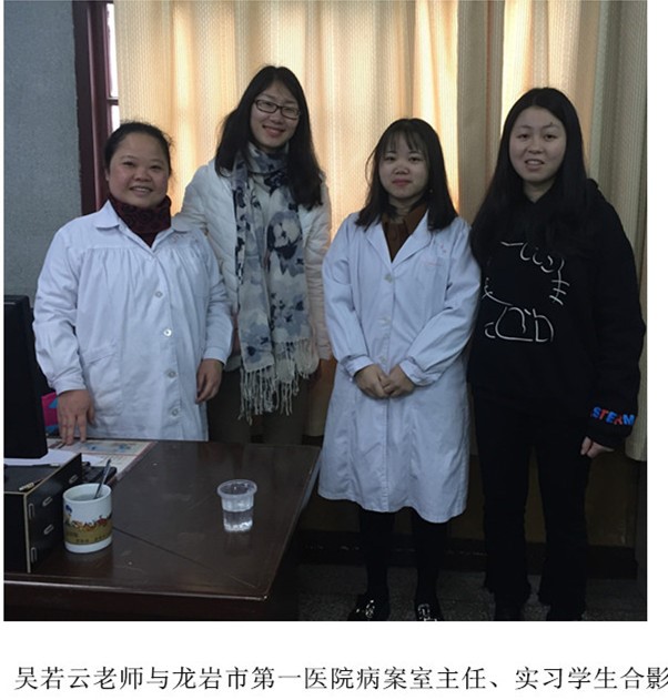 為進一步加強期末實習(xí)管理,做好實習(xí)生思想教育工作,2018年2月9日,管理系教師吳若云前往龍巖市第一醫(yī)院進行春節(jié)前實習(xí)巡點。