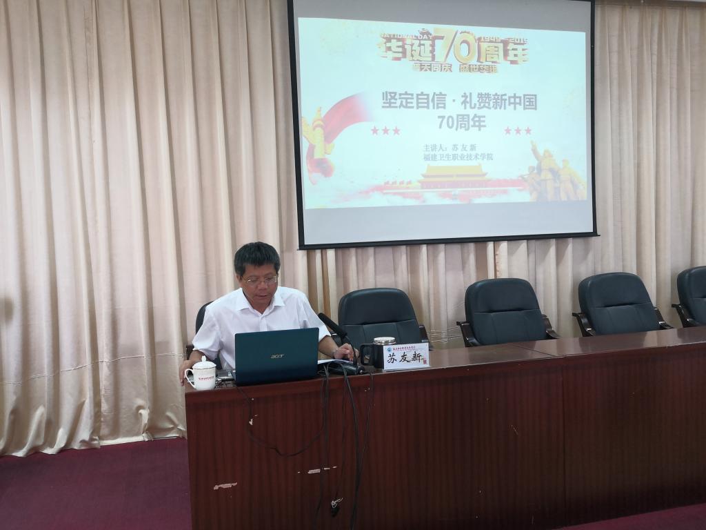 蘇院長(zhǎng)結(jié)合自身經(jīng)歷,從三個(gè)方面深入淺出地給大家講了生動(dòng)形象的一堂課。蘇院長(zhǎng)指出,回望過去,新中國(guó)成立70年來,黨和國(guó)家各項(xiàng)事業(yè)取得輝煌成就,中國(guó)人民實(shí)現(xiàn)了從站起來、富起來到強(qiáng)起來的偉大歷史性飛躍,走出了中國(guó)特色社會(huì)主義道路。我們必須深刻認(rèn)識(shí)堅(jiān)持這條道路的重大意義,不斷增強(qiáng)堅(jiān)定走中國(guó)特色社會(huì)主義道路的自信自覺。立足當(dāng)下,我國(guó)已走在世界前列,這不僅深刻改變了中國(guó)的面貌、也深刻影響了全球發(fā)展格局和世界歷史走向。展望未來,我們必須心懷陽光,敢于擔(dān)當(dāng)作為,勇做時(shí)代的追夢(mèng)人和圓夢(mèng)人,以優(yōu)異的成績(jī)獻(xiàn)禮新中國(guó)70周年華誕。