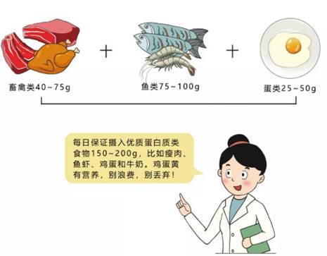 優(yōu)質(zhì)蛋白有助于人體維持正常免疫力和組織細(xì)胞修復(fù),防疫期間要保證足夠的魚、禽、蛋、瘦肉,但是也要適量,優(yōu)先選擇魚和禽,盡量保證每天一個(gè)雞蛋,蛋黃不能丟。少吃肥肉、煙熏和腌制肉制品。