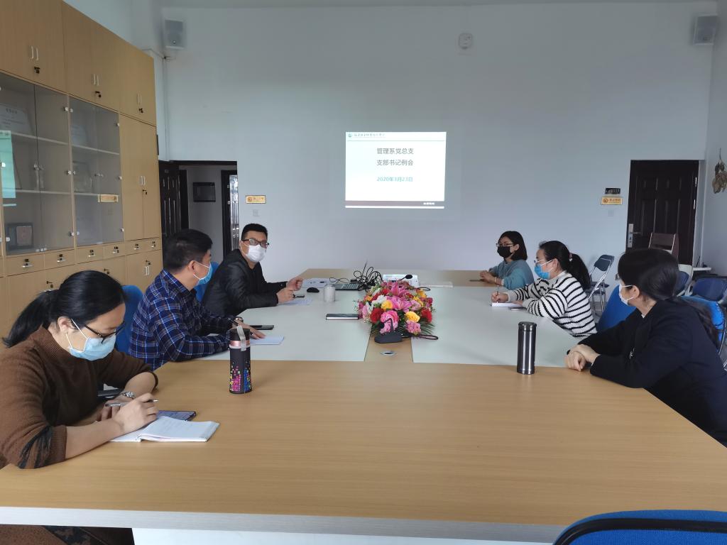 為進一步推動2020年各支部黨建工作順利開展,管理系黨總支于2020年3月23日召開支部書記例會,會議由系黨總書記艾松軍主持。管理系黨總支委員、各支部書記參加會議。
