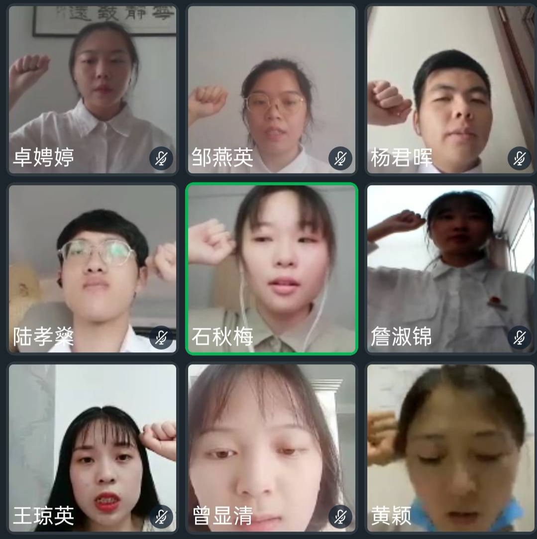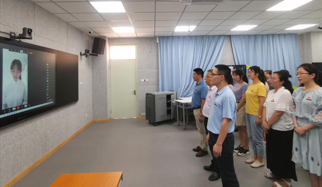 (新黨員連線活動現(xiàn)場,進行線上宣誓)