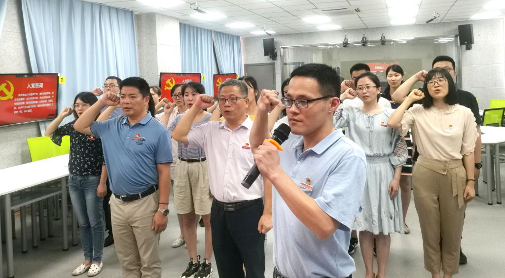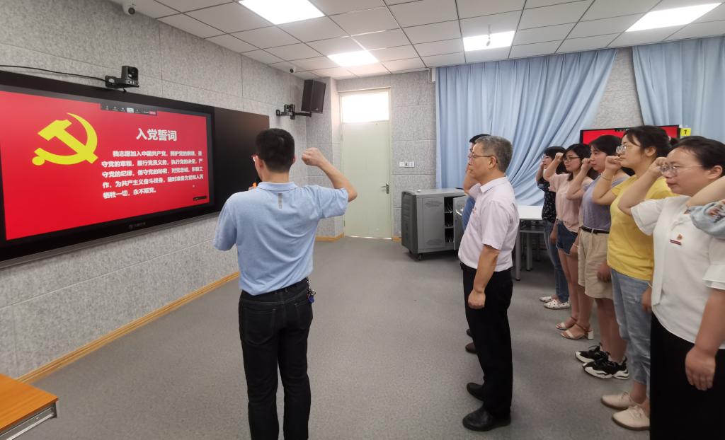 國際歌聲聲在耳,入黨誓詞句句在心。全體黨員唱響《國際歌》,重溫入黨誓詞,40位新黨員同步進行線上入黨宣誓。