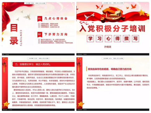 隨后,許曉湖老師著重講解了入黨積極分子還要繼續(xù)強化理論學習,進一步提升黨性修養(yǎng),更好地用習近平新時代中國特色社會主義思想武裝頭腦、指導實踐、推動工作。查找自身的差距明確方向,向優(yōu)秀黨員學習,特別是在學習上,工作上等方面要發(fā)揮“勇擔當,作表率”的精神,以優(yōu)異成績彰顯奮力走在時代前列的使命擔當。要更加堅定政治理想信念,對黨絕對忠誠,不斷爭先創(chuàng)優(yōu),把牢政治方向,永葆忠誠之心。