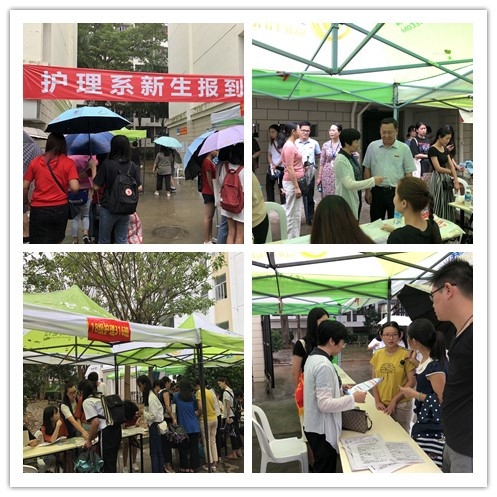 報(bào)到當(dāng)天,結(jié)合護(hù)理系的實(shí)際情況,將報(bào)到處設(shè)置在5號(hào)學(xué)生公寓樓下,同時(shí),在過道外墻和各班報(bào)到辦公桌上均張貼排班名單、報(bào)到流程圖、學(xué)費(fèi)說明等。在現(xiàn)場(chǎng),系部領(lǐng)導(dǎo)老師耐心回答新生和家長(zhǎng)的各種咨詢,介紹護(hù)理系辦學(xué)特色和相關(guān)專業(yè)的基本情況,并及時(shí)為困難學(xué)生開設(shè)“綠色通道”服務(wù);志愿者們帶著新生完成入學(xué)的各項(xiàng)手續(xù)。護(hù)理系熱情的志愿者,慈祥的老師以及一切人性化的服務(wù),令遠(yuǎn)道而來的學(xué)生和隨行的家長(zhǎng)感到由衷的滿意。使新生及家長(zhǎng)第一時(shí)間感受到學(xué)校的溫暖,為新生和家長(zhǎng)留下美好的印象。