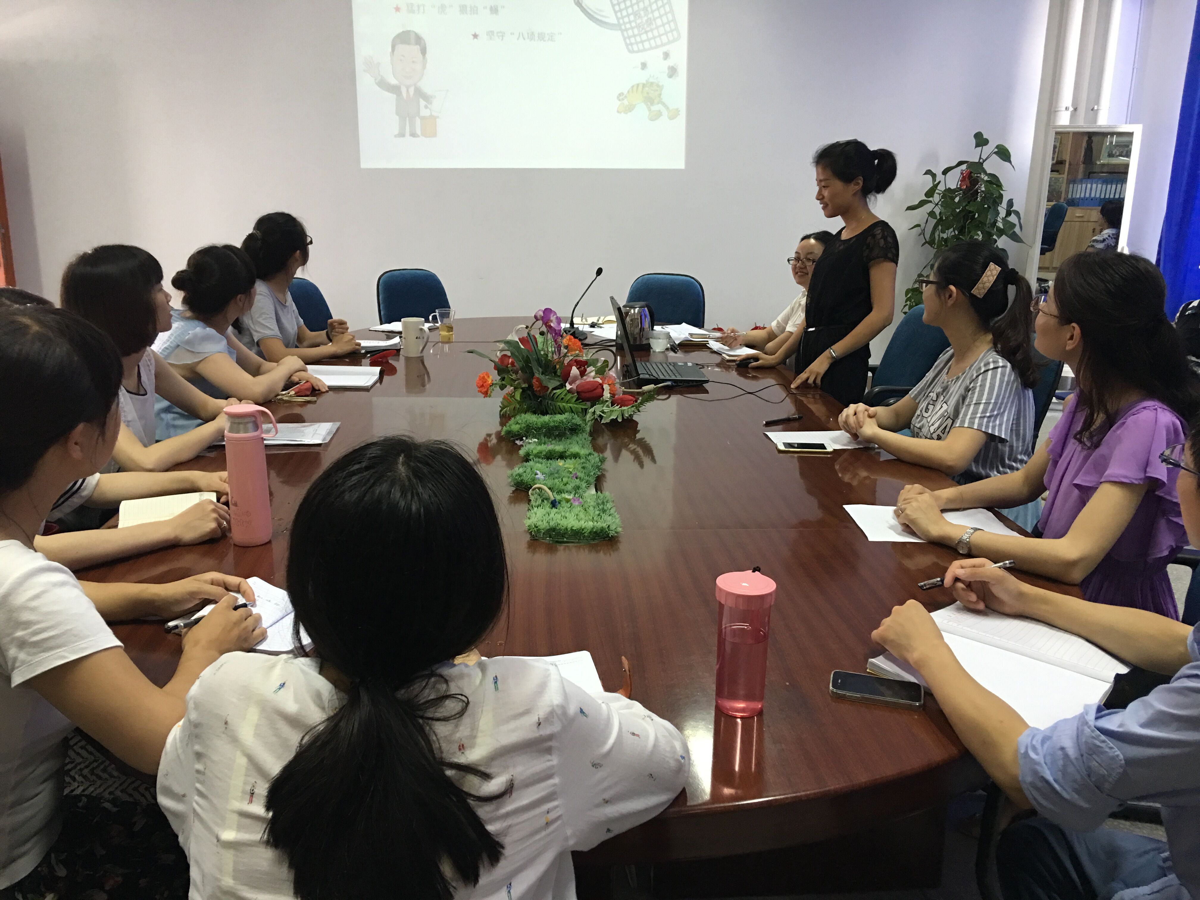 何映紅老師從四方面做了專(zhuān)題報(bào)告。一是“制度籠子”刻上時(shí)代烙??;二是反腐倡廉建設(shè)取得新成就;三是認(rèn)清反腐敗的錯(cuò)誤謬論;四是重塑“不想腐”的社會(huì)價(jià)值觀。她通過(guò)PPT圖文并茂地講述了黨的十八大以來(lái),以習(xí)近平為總書(shū)記的黨中央根據(jù)變化的世情、國(guó)情、黨情,提出并實(shí)施全面從嚴(yán)治黨戰(zhàn)略,出重拳猛打“虎”狠拍“蠅”,對(duì)違反“八項(xiàng)規(guī)定”精神的問(wèn)題緊追不放,嚴(yán)肅查處并不不留情“網(wǎng)曬”,“開(kāi)門(mén)反腐”有效發(fā)揮媒體和群眾監(jiān)督作用,積極推進(jìn)紀(jì)檢體制改革,緊緊抓住“兩個(gè)責(zé)任”,加大問(wèn)責(zé)追責(zé)力度,腐敗惡化的態(tài)勢(shì)得到強(qiáng)力遏制,黨風(fēng)政風(fēng)帶動(dòng)民風(fēng)好轉(zhuǎn),社會(huì)政治生態(tài)朝著健康方向發(fā)展,讓廣大群眾切實(shí)感受到了黨風(fēng)廉政建設(shè)和反腐敗取得的新成效,親眼看到了全面從嚴(yán)治黨后發(fā)生的新變化。