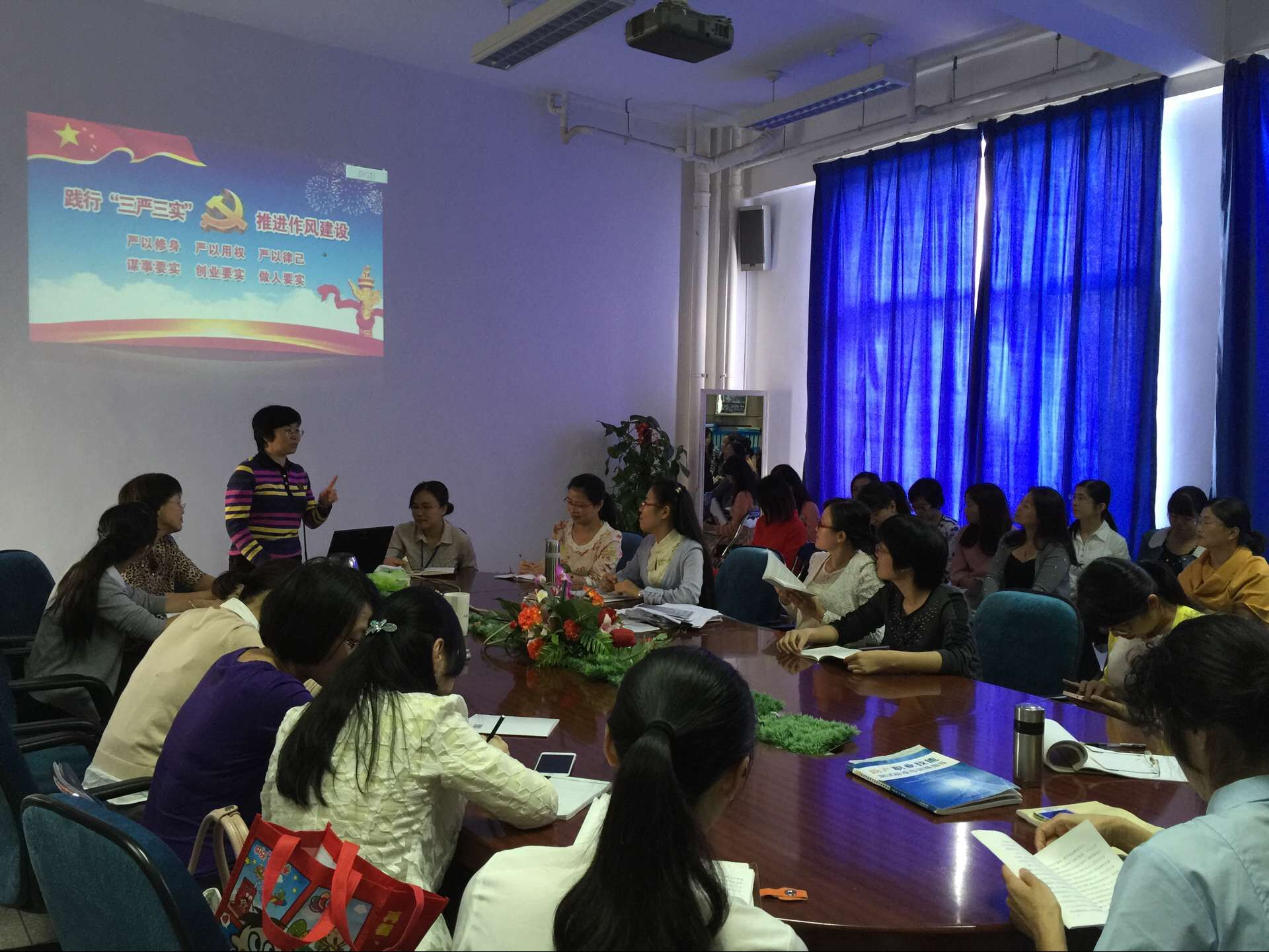 2015年11月24日中午,護理系全體教職員工在會議室參加了由護理系黨總支謝濤書記主講的“踐行‘三嚴(yán)三實’,推進作風(fēng)建設(shè)”的專題講座?!叭龂?yán)三實”,即在推進作風(fēng)建設(shè)的過程中,既要嚴(yán)以修身、嚴(yán)以用權(quán)、嚴(yán)以律己,又要謀事要實、創(chuàng)業(yè)要實、做人要實。參加學(xué)習(xí)的黨員們認為,“三嚴(yán)三實”是對作風(fēng)建設(shè)的進一步升華,立意高遠,寓義深刻,簡明扼要,切中要害,是檢驗黨員干部自身言行的標(biāo)尺。作為教師應(yīng)以己正立信,以無私樹威,以務(wù)實興業(yè),為人民執(zhí)好教,不辜負黨和人民的信任,擔(dān)當(dāng)起全面深化職業(yè)教育教學(xué)改革的歷史使命。