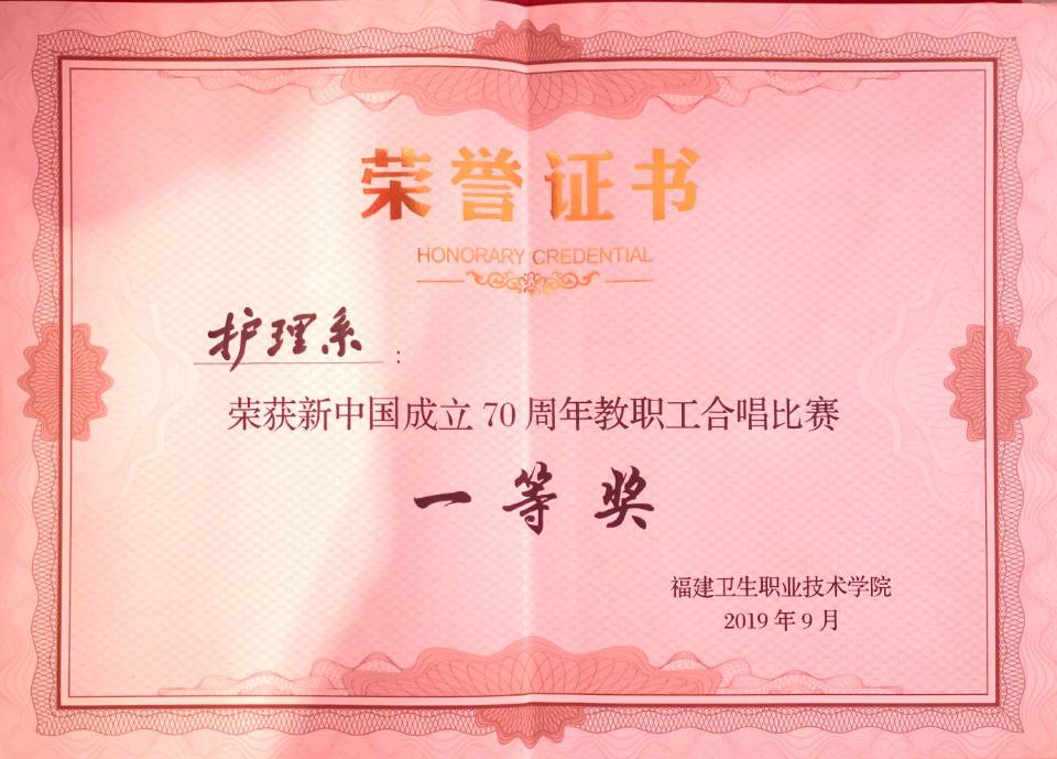 頌歌獻(xiàn)祖國(guó)——護(hù)理系榮獲學(xué)院慶祝新中國(guó)成立70周年教職工合唱比賽一等獎(jiǎng)