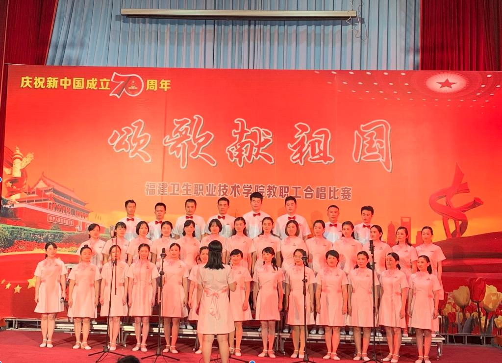 嘹亮的歌聲,喚起中華兒女的自豪和向往;優(yōu)美的旋律,奏響中華民族偉大復(fù)興的壯麗樂章。926日,“頌歌獻(xiàn)祖國(guó)”福建衛(wèi)生職業(yè)技術(shù)學(xué)院慶祝新中國(guó)成立70周年教職工合唱比賽在學(xué)術(shù)廳拉開帷幕,由各部門各系部組成的8支參賽隊(duì)伍用動(dòng)聽的歌聲向祖國(guó)獻(xiàn)上最美好的祝福。經(jīng)過激烈角逐,護(hù)理系代表隊(duì)合唱的歌曲《彈起我心愛的土琵琶》、《年輕的朋友來相會(huì)》榮獲一等獎(jiǎng)。