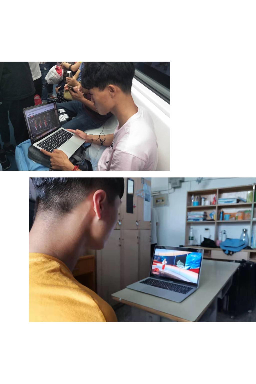 同學(xué)們也時(shí)刻關(guān)注著慶祝大會。留校的同學(xué)在宿舍觀看慶祝大會,返家途中的同學(xué)們在擁擠的車上也時(shí)刻關(guān)注著慶祝大會的盛況。