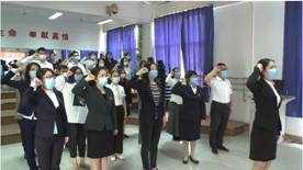 4月29日上午,援鄂校友陳雨雯帶領(lǐng)護(hù)理系全體黨員教師在黨旗下重溫入黨誓詞,鏗鏘有力的宣誓聲,展示了共產(chǎn)黨人為人民服務(wù)的初心與使命,增強(qiáng)了全體黨員的榮譽(yù)感與使命感,也堅(jiān)定了全體黨員立足崗位、無(wú)私奉獻(xiàn)的決心。