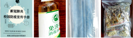 愛心“健康包”中包含了返校期間需要用到的口罩、免洗手消毒液、中藥涼茶、防疫手冊(cè)等。