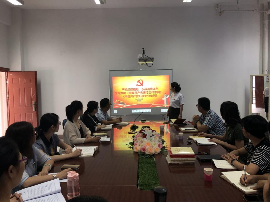 課上,龔海蓉副主任以“嚴(yán)明紀(jì)律規(guī)矩,永葆清廉本色”為主題,帶領(lǐng)大家學(xué)習(xí)了《中國共產(chǎn)黨廉潔自律準(zhǔn)則》(以下簡稱《準(zhǔn)則》)、《中國共產(chǎn)黨紀(jì)律處分條例》(以下簡稱《條例》)。她首先強(qiáng)調(diào),對(duì)于一個(gè)黨員,紀(jì)律是高壓線;對(duì)于一個(gè)政黨,紀(jì)律是生命線。《準(zhǔn)則》和《條例》為黨員們制定了思想、行為準(zhǔn)則。接著,她從為什么重新修訂《準(zhǔn)則》《條例》、《準(zhǔn)則》《條例》的修改背景、重點(diǎn)解讀、重要意義、扎實(shí)踐行貫徹新《準(zhǔn)則》《條例》五個(gè)方面與大家分享了她的學(xué)習(xí)感受。最后,她強(qiáng)調(diào),每位黨員都要繃緊黨紀(jì)這根弦,嚴(yán)守自己的底線,做政治上的明白人。