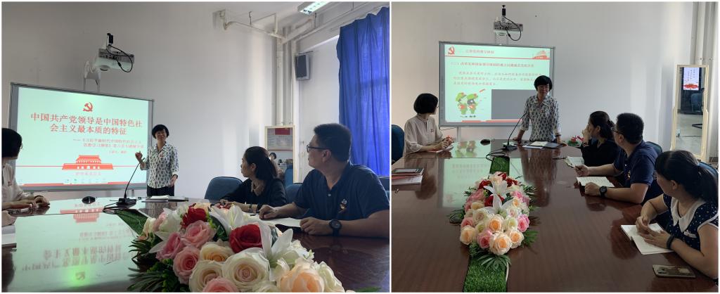 課上,謝濤書記就《習近平新時代中國特色社會主義思想學習綱要》第六章內(nèi)容——中國共產(chǎn)黨領導是中國特色社會主義最本質的特征與大家做了分享。她強調(diào),習近平總書記在黨的十九大報告中說道,“黨政軍民學,東西南北中,黨是領導一切的”,這充分說明了我們要把黨的領導落實到一切工作當中去。接著,她從堅決做到“兩個維護”、完善堅持黨的領導的體制機制、全面增強黨的執(zhí)政本領三個方面向我們解讀了為什么說中國共產(chǎn)黨領導是中國特色社會主義最本質的特征。最后,她強調(diào),中國共產(chǎn)黨領導是中國特色社會主義最本質的特征,澄明了中國特色社會主義與中國共產(chǎn)黨的根本性聯(lián)系,也必將推動中國特色社會主義和中國共產(chǎn)黨自身的發(fā)展和完善。
