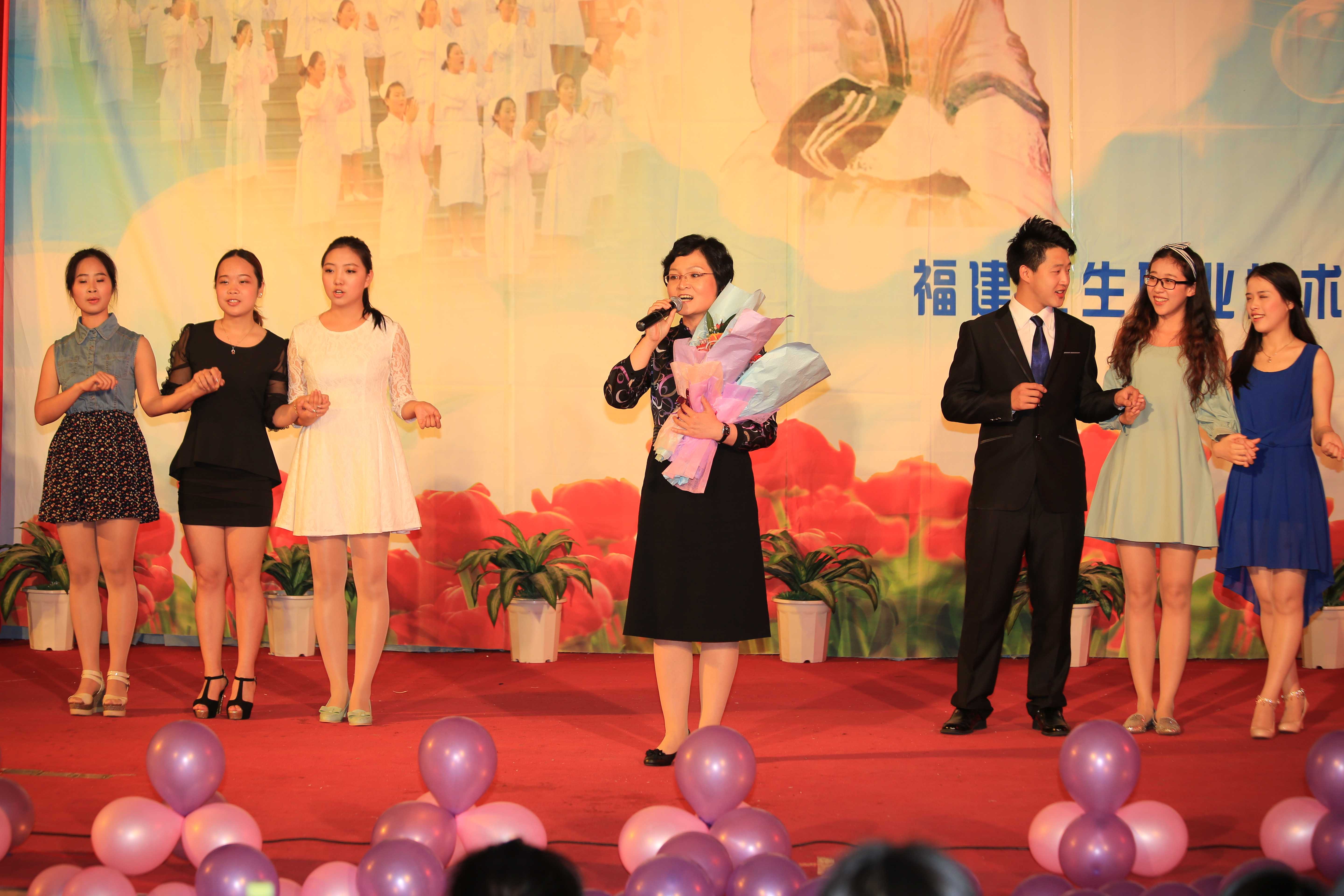 5月12日晚,護理系5.12護士節(jié)“我心飛翔”文藝匯演暨畢業(yè)晚會在學術(shù)廳隆重舉行。蒞臨本次晚會的嘉賓有院黨委林春明書記、郭素華院長、魏立娜副院長、財務(wù)處吳香書處長、學工處葉海副處長、院團委宋維副書記、護理系黨總支謝濤書記、王珊珊副主任、各系部團總支書記、院團委王燁老師及護理系全體輔導員。