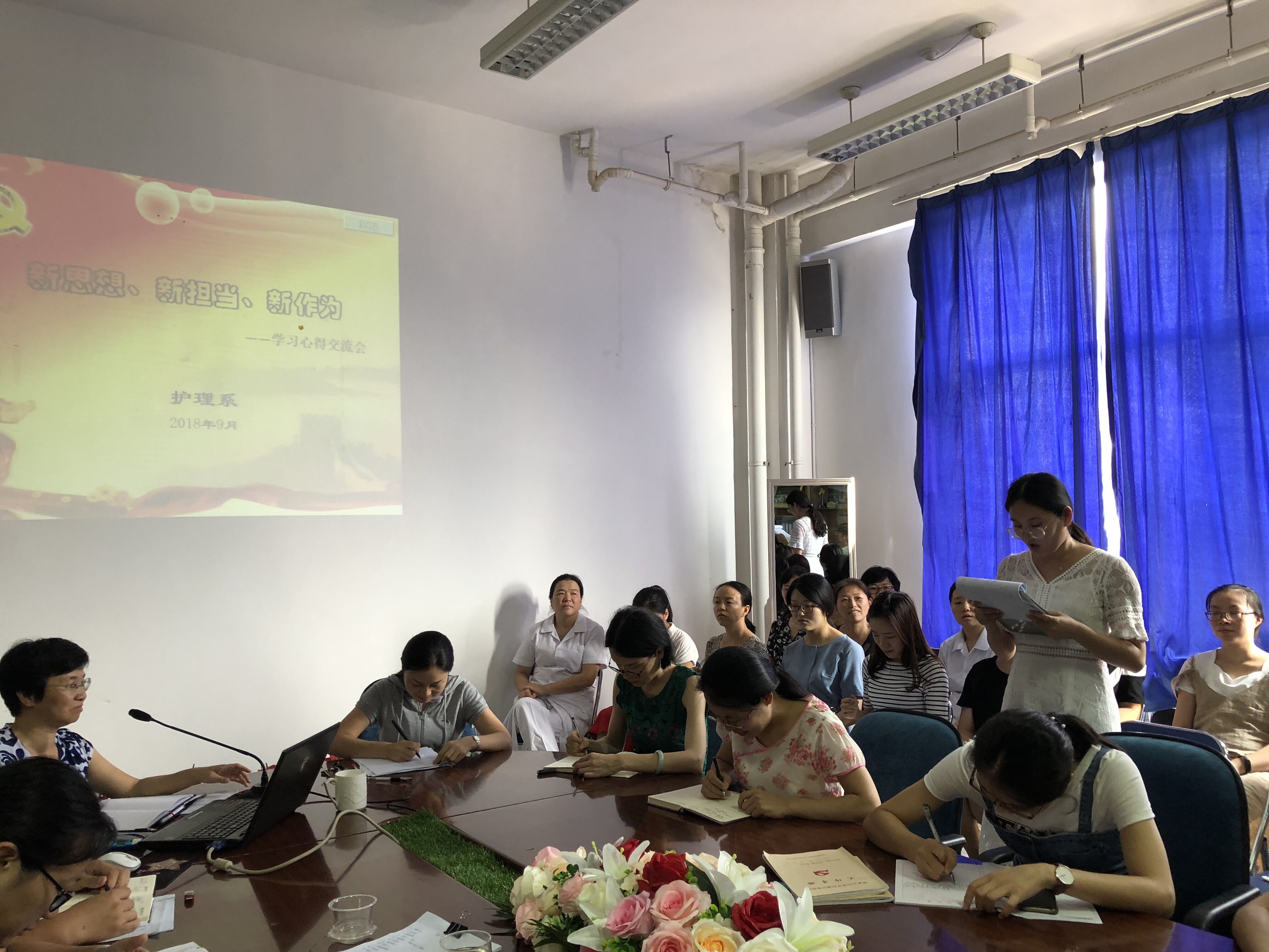 為進(jìn)一步學(xué)懂弄通做實(shí)習(xí)近平新時(shí)代中國(guó)特色社會(huì)主義思想,掀起新思想“大學(xué)習(xí)、大宣講、大調(diào)研”熱潮,我系于9月6日下午在護(hù)理系會(huì)議室召開(kāi)主題為“新思想、新?lián)?dāng)、新作為”的學(xué)習(xí)心得交流會(huì),會(huì)議由護(hù)理系黨總支書(shū)記謝濤同志主持。
