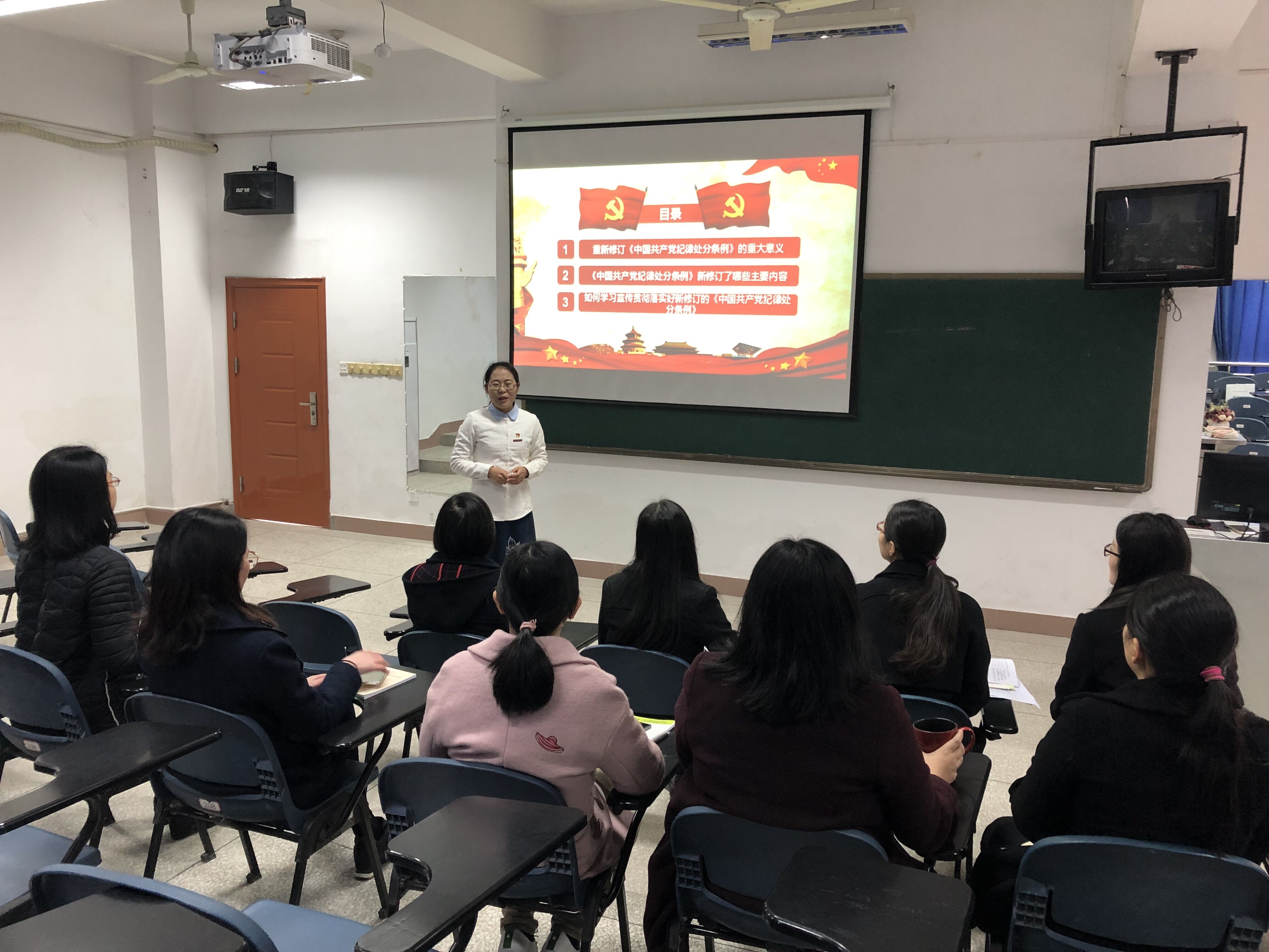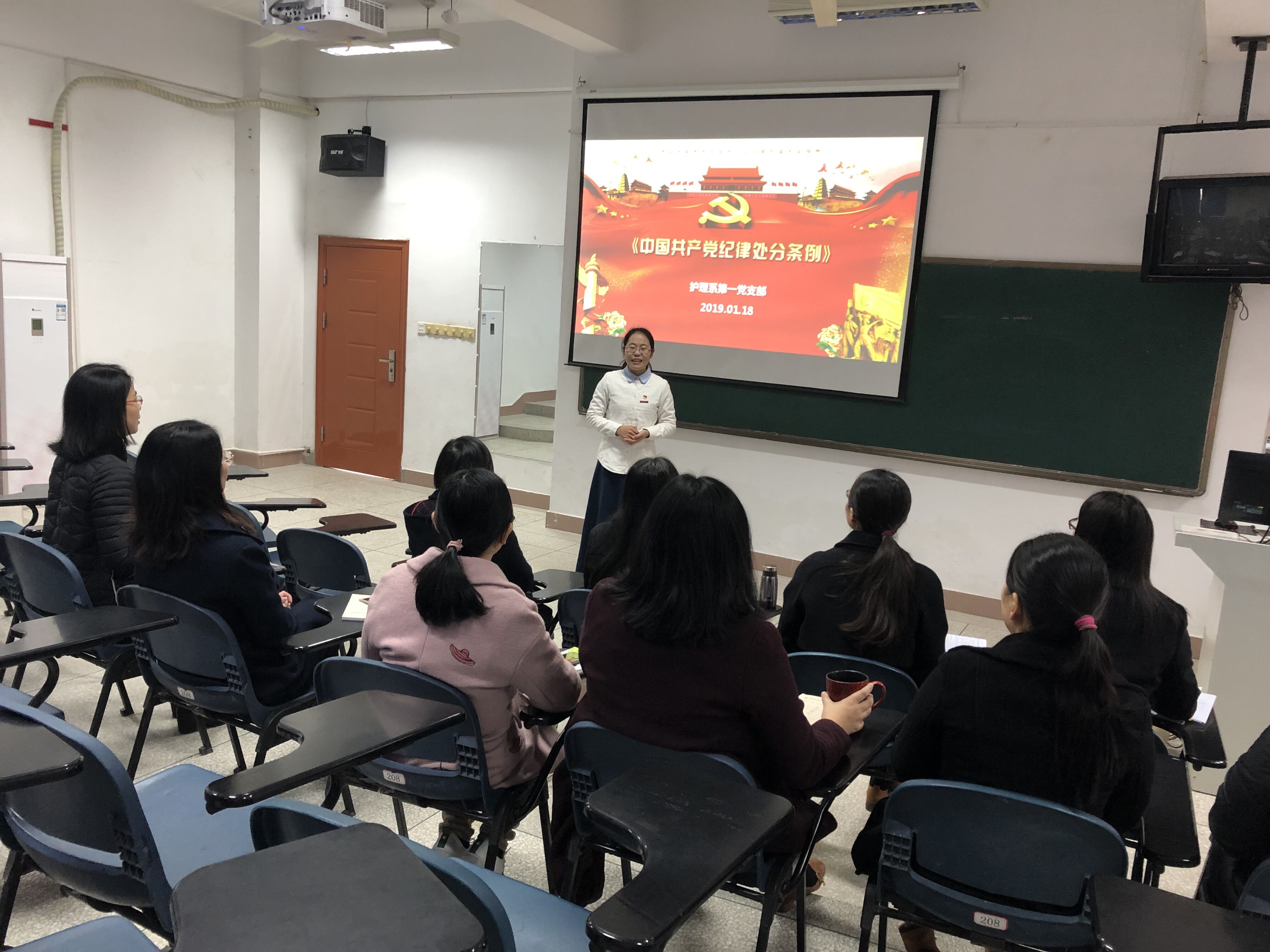 護(hù)理系第一黨支部于2019年1月18日召開支部黨員大會,組織全體黨員集中學(xué)習(xí)《中國共產(chǎn)黨紀(jì)律處分條例》(以下簡稱《條例》)。