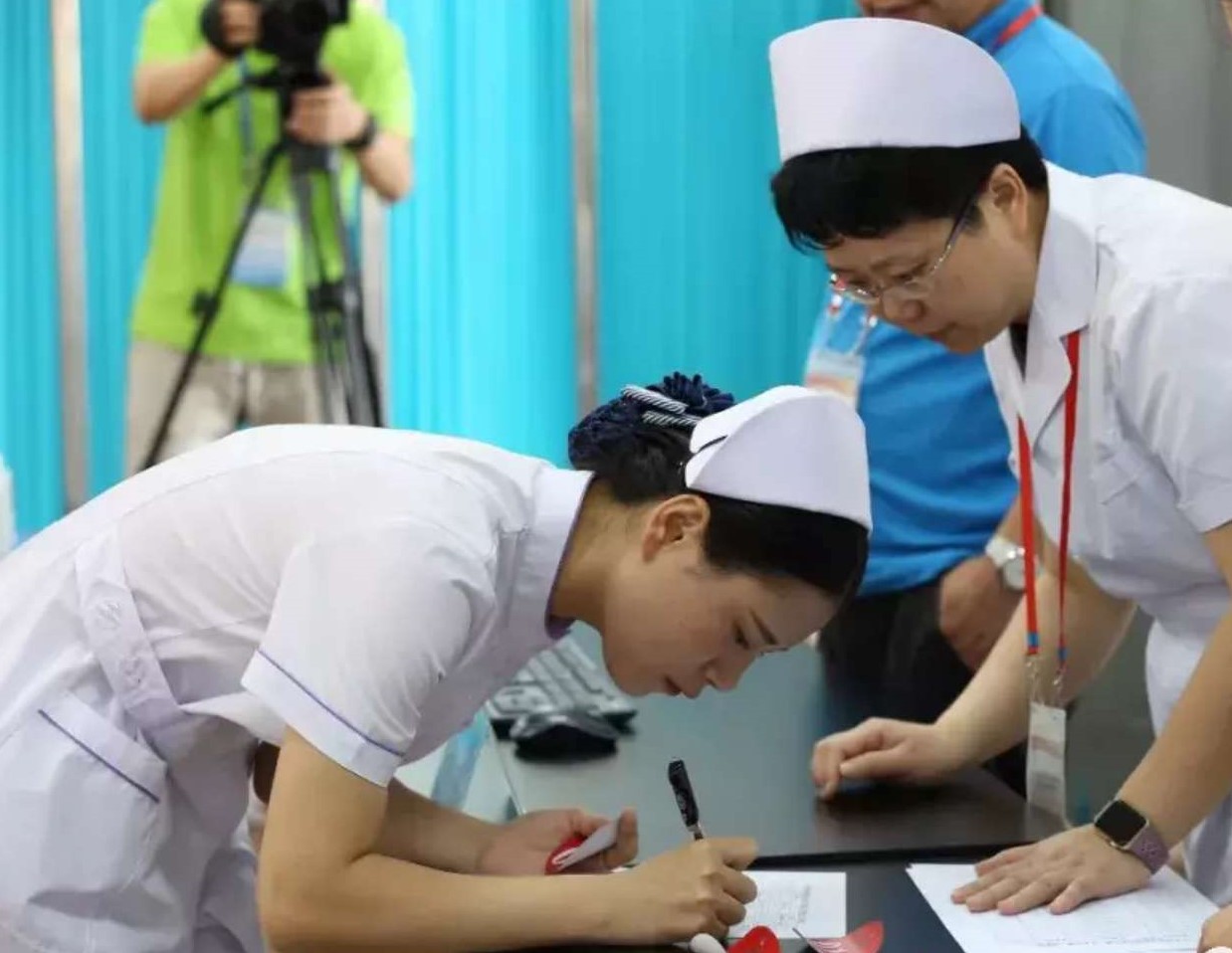 本次大賽由各省、自治區(qū)、直轄市經(jīng)預(yù)賽選拔的優(yōu)秀選手組成代表隊(duì),每名選手首先在健康評(píng)估室書(shū)面完成臨床護(hù)理案例分析,然后進(jìn)入操作室根據(jù)患者病情及醫(yī)囑要求,先后完成右踝扭傷固定包扎、徒手心肺復(fù)蘇、靜脈留置針輸液、氣道切開(kāi)護(hù)理四項(xiàng)護(hù)理技能操作,主要考核選手護(hù)理思維判斷、分析問(wèn)題、解決問(wèn)題的能力,檢測(cè)選手急救護(hù)理技能操作水平及人文職業(yè)素養(yǎng)。