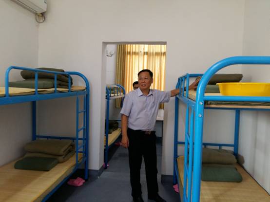 曾書記首先對(duì)學(xué)生的軍訓(xùn)場(chǎng)地、教室、食宿條件等情況進(jìn)行了督查,并提出在飲食安全衛(wèi)生、教學(xué)條件等方面的具體要求,其次與軍訓(xùn)基地及培訓(xùn)方對(duì)軍訓(xùn)的日常安排、軍訓(xùn)細(xì)節(jié)等方面展開了細(xì)致的討論和敲定,對(duì)學(xué)生的習(xí)慣養(yǎng)成、價(jià)值觀引導(dǎo)、軍訓(xùn)期間的管理、中秋活動(dòng)的方面提出了更高的要求和意見。