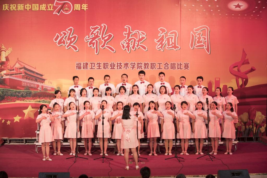 嘹亮的歌聲,喚起中華兒女的自豪和向往;優(yōu)美的旋律,奏響中華民族偉大復(fù)興的壯麗樂(lè)章。9月26日,“頌歌獻(xiàn)祖國(guó)”福建衛(wèi)生職業(yè)技術(shù)學(xué)院慶祝新中國(guó)成立70周年教職工合唱比賽在學(xué)術(shù)廳拉開(kāi)帷幕,由各部門各系部組成的8支參賽隊(duì)伍用動(dòng)聽(tīng)的歌聲向祖國(guó)獻(xiàn)上最美好的祝福。經(jīng)過(guò)激烈角逐,護(hù)理系代表隊(duì)合唱的歌曲《彈起我心愛(ài)的土琵琶》、《年輕的朋友來(lái)相會(huì)》榮獲一等獎(jiǎng)。