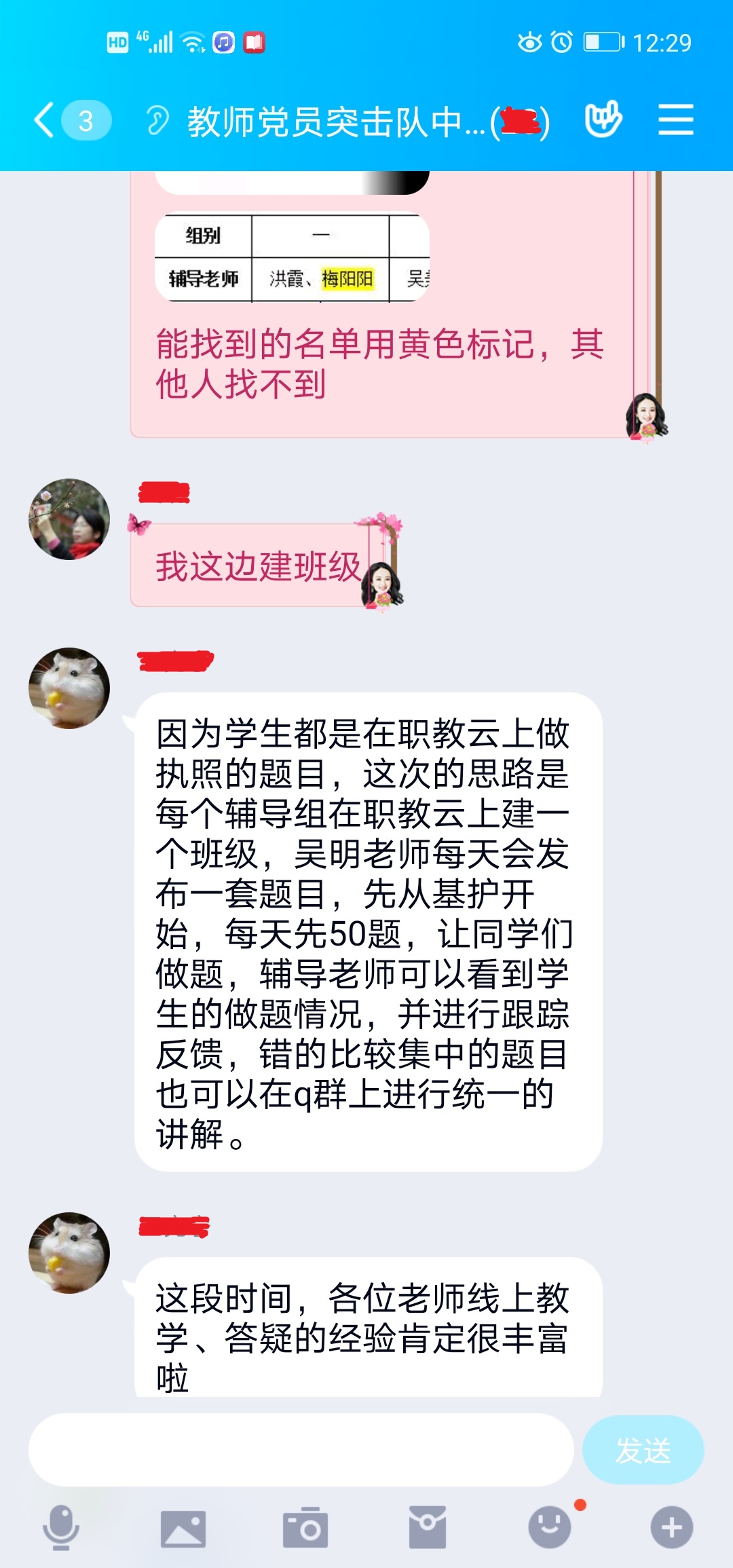 此情此景,護(hù)理系黨員干部看在眼里、急在心里,迅速因事而化、因時而進(jìn)、因勢而新,成立了以謝濤書記為組長、護(hù)理系黨員突擊隊為中堅的在線輔導(dǎo)員小組,并于4月8日召開線上黨日活動,集體分析研究精準(zhǔn)扶貧班的班情、學(xué)情,共同制定精準(zhǔn)扶貧班護(hù)士資格考試“一對一”在線輔導(dǎo)方案,對“一對一”在線輔導(dǎo)進(jìn)行分工并責(zé)任落實到人等,推進(jìn)精準(zhǔn)扶貧班備戰(zhàn)202年護(hù)士資格考試。