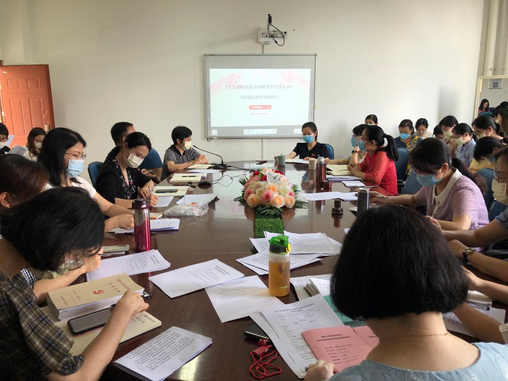2020年6月4日下午,護(hù)理系組織全體教職員工認(rèn)真學(xué)習(xí)“兩案八制”《復(fù)課證明查驗(yàn)制度》和《學(xué)生錯(cuò)峰返校及錯(cuò)峰教學(xué)安排方案》兩個(gè)文件。龔海蓉主任帶領(lǐng)大家一起學(xué)習(xí),反復(fù)跟老師們強(qiáng)調(diào)文件中的要點(diǎn)內(nèi)容,使熟悉及時(shí)規(guī)范處置課堂突發(fā)情況等流程、復(fù)課證明辦理手續(xù)等內(nèi)容,要求在會(huì)后教研室內(nèi)部再次討論學(xué)習(xí),要確保18級(jí)、16級(jí)學(xué)生返校崗前培訓(xùn)不出狀況,務(wù)必站好本學(xué)期最重要一班崗。謝濤書記強(qiáng)調(diào)疫情防控關(guān)鍵期,要按照文件精神牢牢把握推進(jìn)疫情防控工作要求,提高政治站位,強(qiáng)化責(zé)任擔(dān)當(dāng),各位教職工一定要認(rèn)真學(xué)習(xí),嚴(yán)格遵守,規(guī)范行為。加強(qiáng)監(jiān)督落實(shí),強(qiáng)化責(zé)任追究,嚴(yán)格、及時(shí)、準(zhǔn)確上報(bào)有關(guān)信息,落實(shí)好各項(xiàng)工作任務(wù),抓實(shí)抓細(xì)。通過(guò)本次學(xué)習(xí),大家不僅對(duì)于如何處理教學(xué)中突發(fā)狀況有了更清晰的認(rèn)知,也進(jìn)一步增強(qiáng)了疫情防控的責(zé)任意識(shí)。