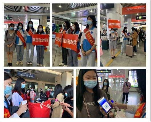 迎新當天,護理系工作人員和學(xué)生志愿者們早早地在火車站開展接站服務(wù),學(xué)院還安排了校內(nèi)接駁車,幫助入校的新生搬運行李,讓不能陪同的父母安心。校園內(nèi)也處處洋溢著喜慶氣氛,隨處可見的鮮紅標語、迎風(fēng)飄揚的注水旗、一張張醒目的指引標志。