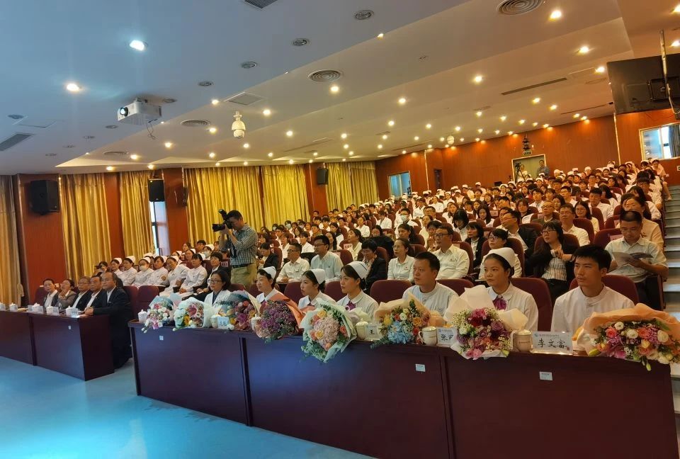 藍(lán)鈺菱還與援鄂校友陳芝薇一起在現(xiàn)場(chǎng)獻(xiàn)唱抗疫原創(chuàng)歌曲《提燈女神》。護(hù)理系學(xué)生合唱團(tuán)與在場(chǎng)師生齊唱福建衛(wèi)職院校歌《仁心如花》,優(yōu)美的旋律和動(dòng)人的歌聲將報(bào)告會(huì)推向高潮。