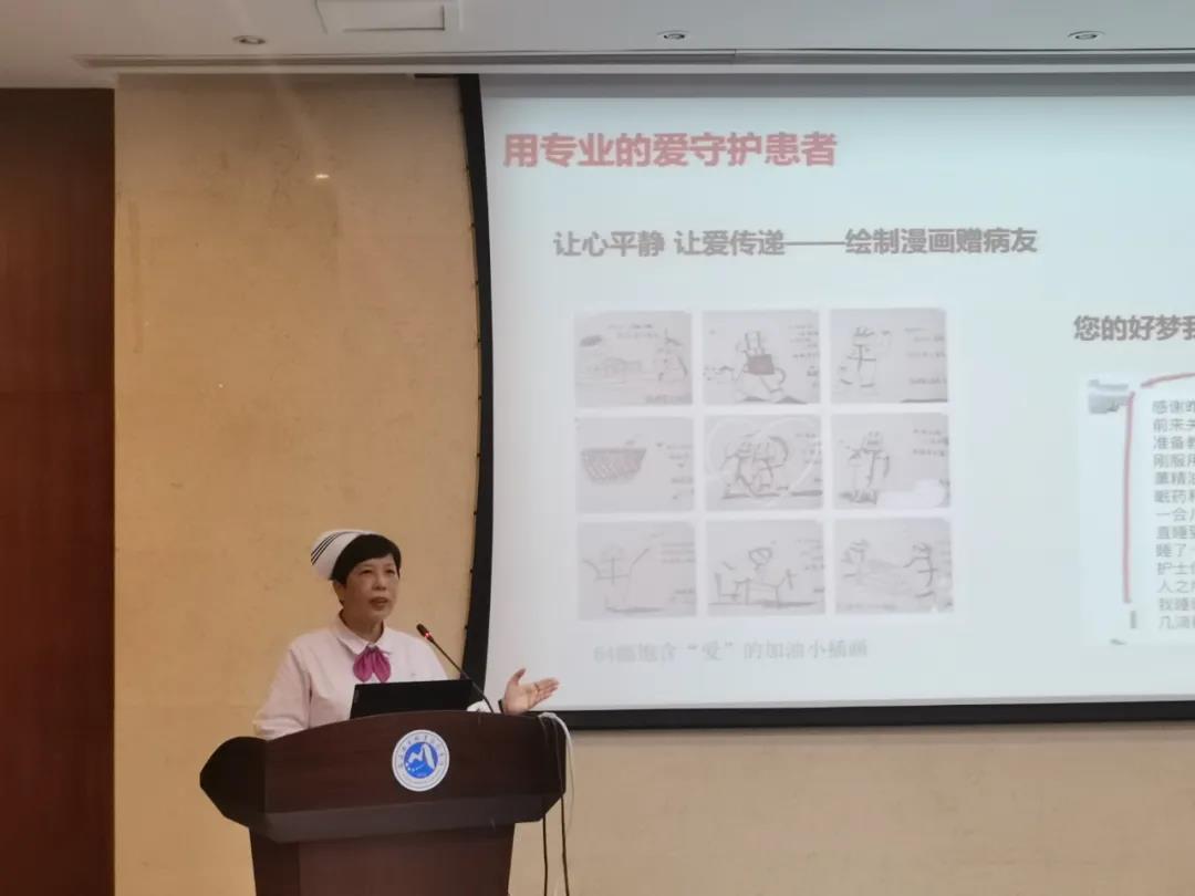 福建省立醫(yī)院第三批援鄂醫(yī)療隊(duì)護(hù)理領(lǐng)隊(duì)、福建省立醫(yī)院護(hù)理部主任陳曉歡以“用專業(yè)的愛守護(hù)患者”為主題,溫情講述發(fā)揮黨員模范作用,成立“巴林特”小組,建立“心靈小屋”微信群,把愛寫在身上、繪制漫畫贈(zèng)病友等撫慰心靈、傳遞愛心的暖心故事,近距離接觸患者進(jìn)行導(dǎo)尿、吸痰等操作,以最實(shí)工作作風(fēng)、最高工作標(biāo)準(zhǔn)守護(hù)患者,她積極參與由11支全國(guó)護(hù)理領(lǐng)隊(duì)組成的聯(lián)合護(hù)理部工作,所帶團(tuán)隊(duì)獲最佳護(hù)理質(zhì)量與安全獎(jiǎng)。